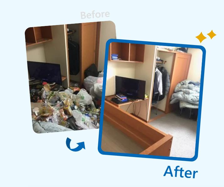飲食店の社宅にお住まいだった方が仕事を辞めたので部屋に行ってみるとゴミ屋敷だった!というご理由でゴミ屋敷片付けを承りました。粗大ゴミを含む大量の生活ゴミを一度に処分したいとのご希望でした。掛け布団や生活ゴミをすべて搬出し、床が見える状態に整えました。ワンルームということもあり、作業は約30分で完了しました。「これで新しいスタッフを入居できる」とのお言葉をいただきました。