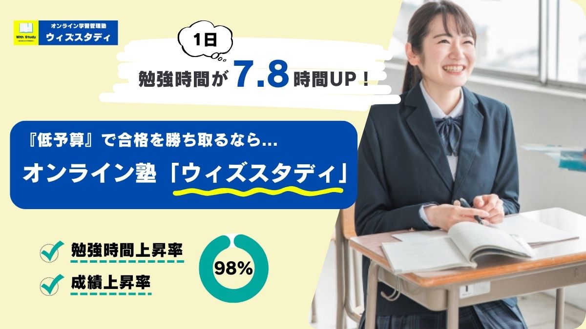 安い料金で受講できるオンライン学習管理塾「ウィズスタディ」は、月々8,900円〜という安さで中学生・高校生の受験指導を行っています。