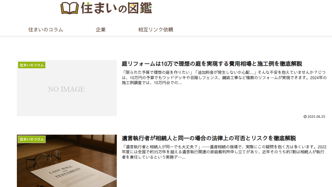 庭のリフォーム費用や遺言書に関する情報、プレハブ住宅のみりょくなど、幅広い暮らしに関する情報を配信されている「