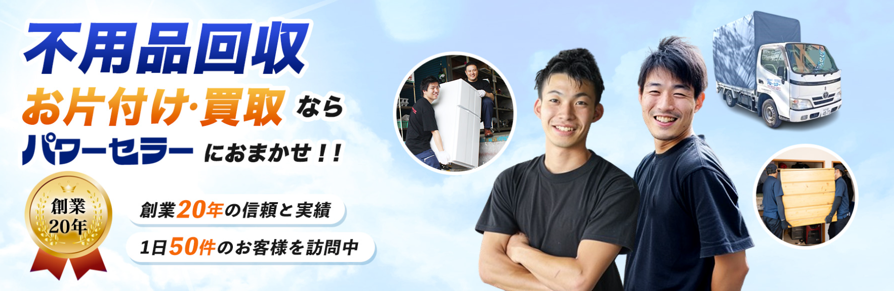 不用品回収のパワーセラーは、東京、埼玉、千葉、神奈川で格安の不用品、粗大ごみの回収を承っています。創業20年以上を超える実績があり、料金表もホームページに明示されています。お電話やラインやメールでも費用を確認できるので安心です。また、電話・メール・LINEだけでお見積り金額をお伝えします。