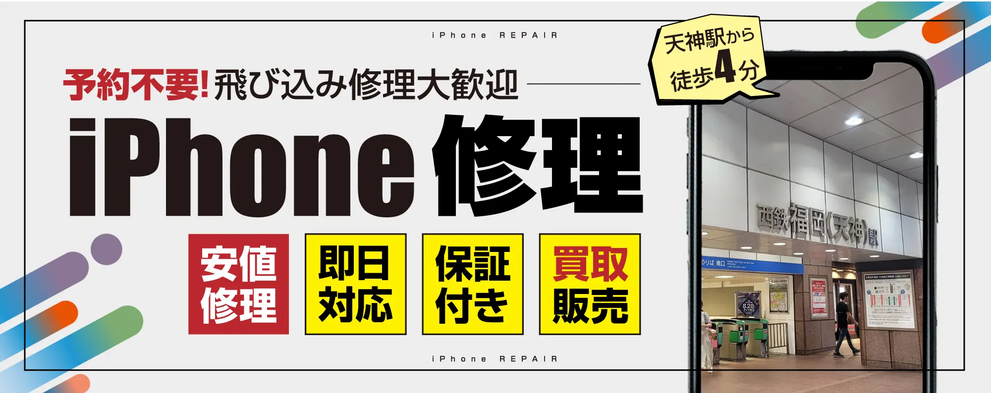 iPhone修理福岡なら福岡市中央区天神駅チカのスマップル天神店。住所:福岡県福岡市中央区今泉1丁目21−8 ステージ天神2 3F 電話番号:092-707-3443